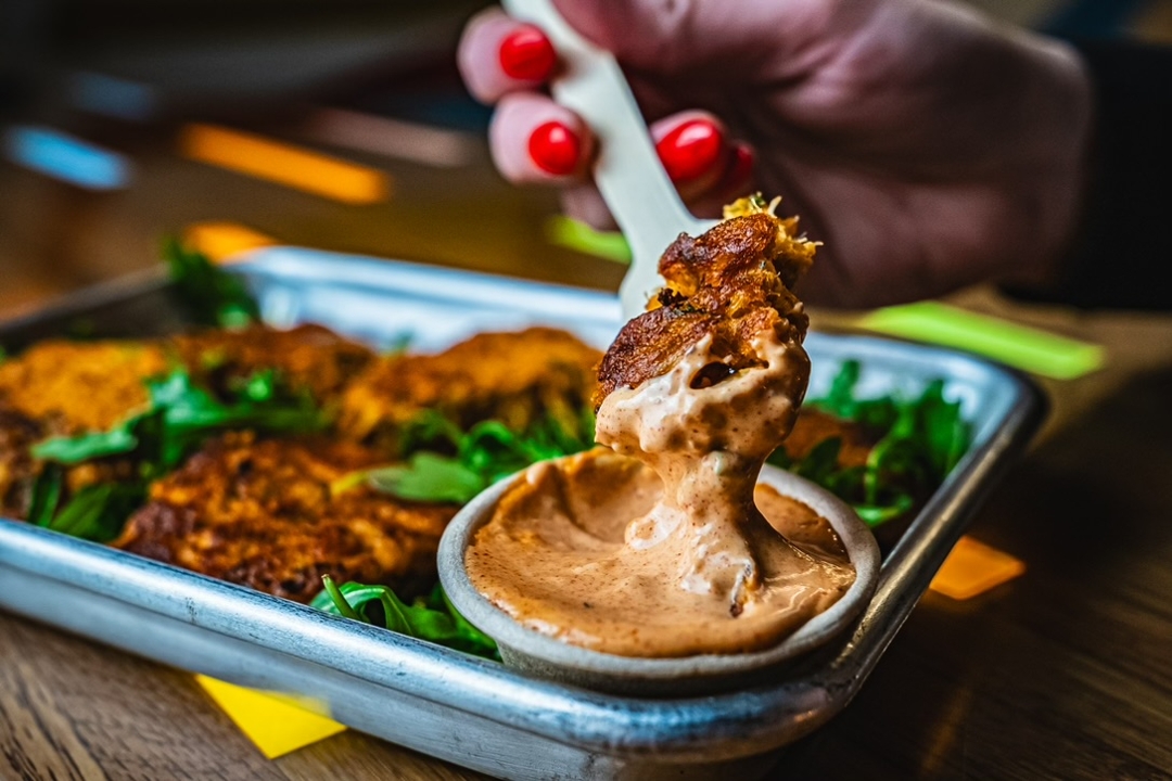 Made in-house with wild blue crab meat, fire-crisped and served on a bed of dressed greens with charred lemon and our smokey remoulade. Recommended Wine Pairing: Dawn Chorus, Sauvignon Blanc